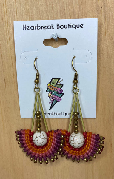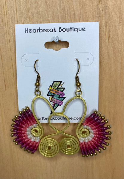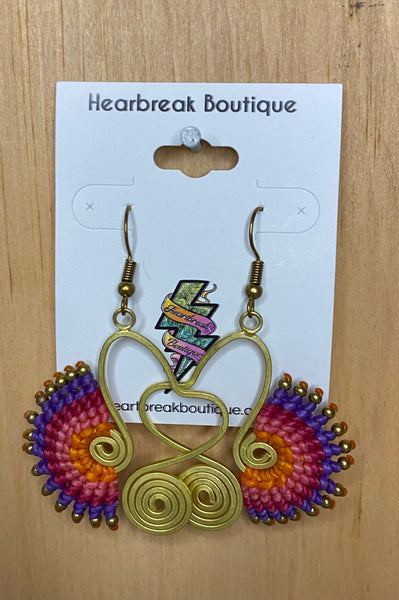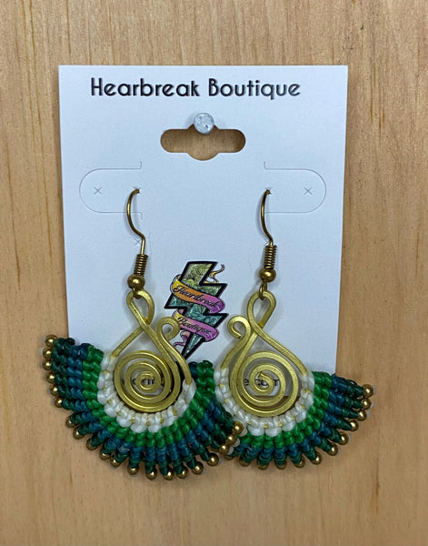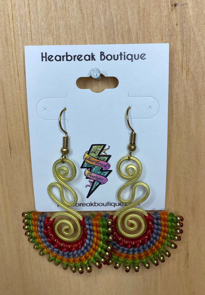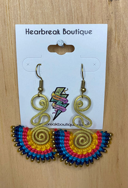 These beauties earrings were brought back from Pam’s travels in Thailand. Colourful weaving and beaded detail make these antique brass earrings a unique pop for any outfit!