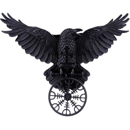 This beautiful hair clip presents black crow with healing rune engraved. In its claws it holds aegishjalmur helm of awe.