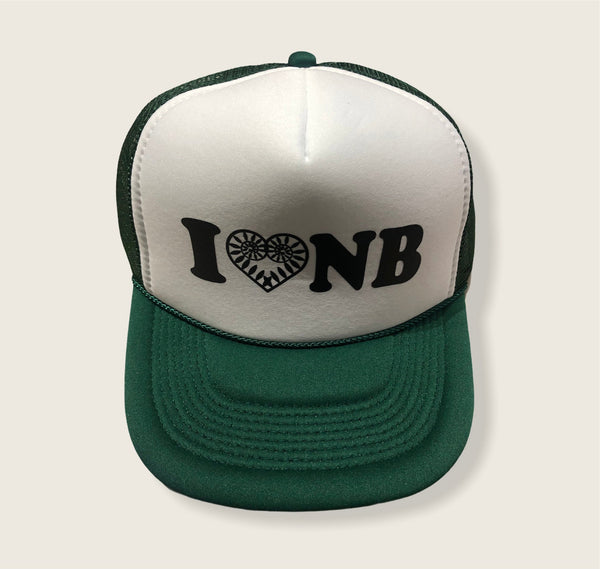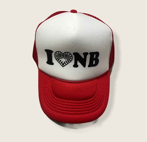 Mesh trucker hat in 5 colour options with the I 🖤 NB Trucker Hats design.Â