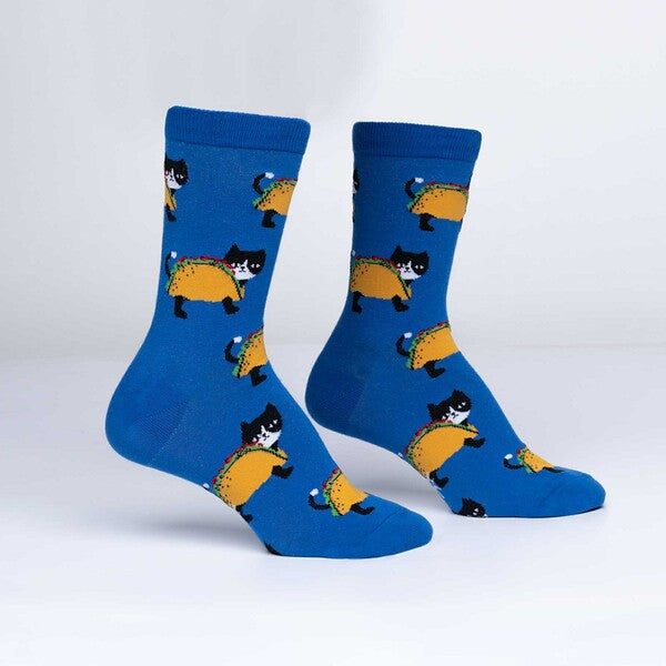 Cats: we love them. We love them as pets, as memes, and as the benevolent yet vengeful feline overlords of our fragile human lives. Pair them with tacos, and you get a combination we love to taco 'bout! Wear these Let's Taco 'bout Cats Crew Socks and start a conversation with a dog/burrito lover if you DARE.
