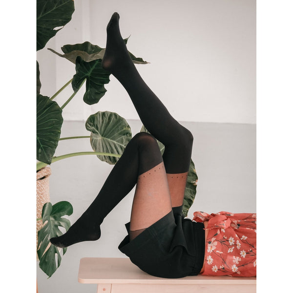 These over-the-knee tights have a fun yet subtle dotted line finish for a unique look that will easily complement all your basics. An ideal trend piece, it will complete any wardrobe.