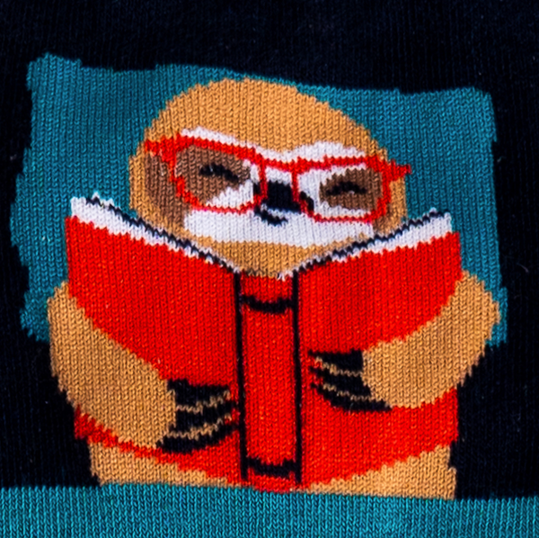 Unwind with these socks showcasing sleepy reading sloths – they're the perfect literary companions for your feet's downtime!