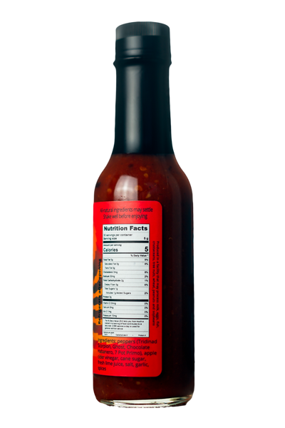 Ingredients: peppers (Trinidad Scorpion, Ghost, Chocolate Habanero),
