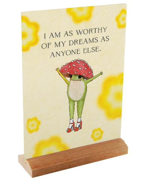 Discover empowering self-love wisdom from the internet's beloved mushroom frog in this beautiful deck of 52 affirmation cards